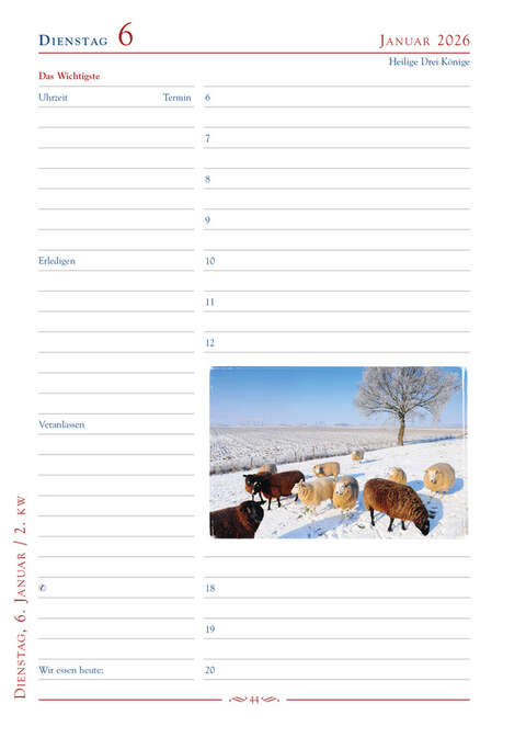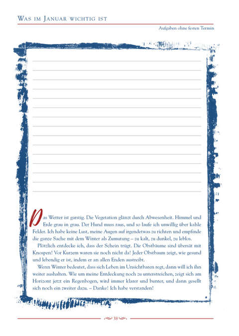 Seit mehr als 25 Jahren begeistert dieser Kalender Frauen. Er hilft ihnen mit einem genialen Konzept dabei, ihren Alltag zu organisieren und zu dokumentieren – er ist Terminplaner und Tagebuch in einem. Die Kalenderseiten lassen viel Raum für Termine, Notizen, Gedanken und Erinnerungen. Zusätzlich helfen vielen praktischen Listen, Übersichten und Notizseiten dabei, immer den Überblick zu behalten.