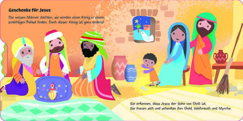 Die Weihnachtsgeschichte zum Spielen und Entdecken! Mit Klappen zum Öffnen, Schiebern zum Bewegen und Rädern zum Drehen können kleine Hände aktiv dabei sein und spielerisch erfahren, wie Jesus in Bethlehem geboren wurde. Mit kurzen Texten, farbenfrohen Illustrationen und stabilen Seiten perfekt geeignet, um mit den Kleinsten die Weihnachtsgeschichte zu erleben.
