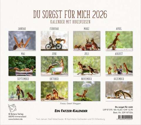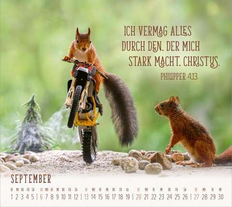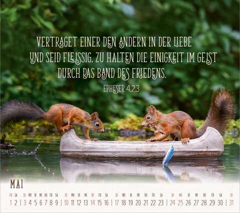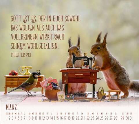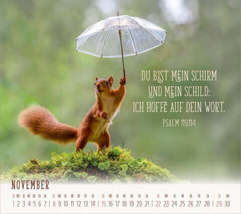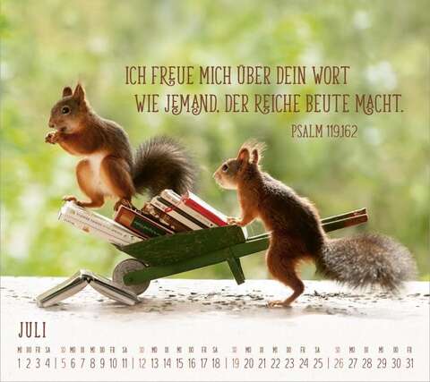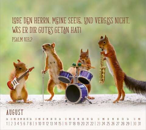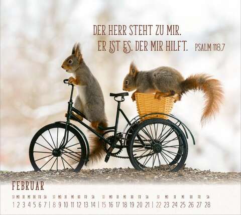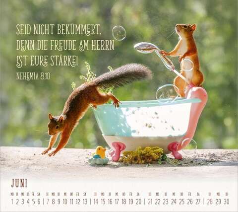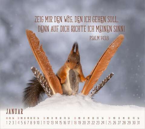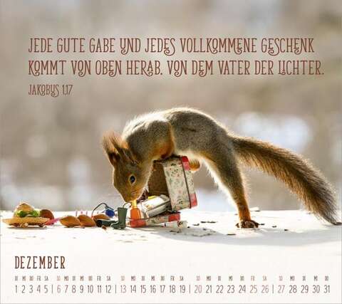Dieser Kalender ist auch als Wandkalender sowie in einer etwas kleineren Tischkalender-Variante erhältlich, sodass Du die Möglichkeit hast, die ideale Größe für Deinen Raum zu wählen. Lass Dich von den fröhlichen Eichhörnchenbildern inspirieren und genieße jeden Tag, den Gott für Dich sorgt!
