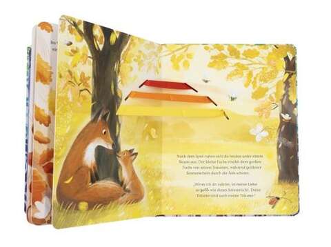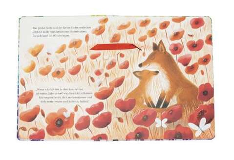 Der große Fuchs weckt den kleinen Fuchs zu einem besonderen Tag. Gemeinsam erkunden sie den Wald, laufen durch ein Mohnblumenfeld, tollen im Laub, überqueren einen Bach, träumen und erzählen und trotzen Wind und Regen.
