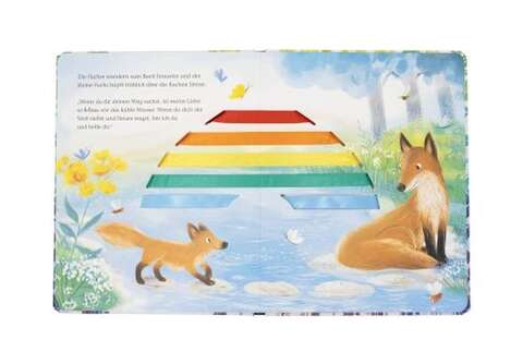 In jeder Situation spürt der kleine Fuchs die Geborgenheit und Liebe seines großen Freundes. Durch diese gemeinsamen Momente lernt er, Neues zu wagen und die Welt mit offenen Augen zu sehen. Die Farben des Regenbogens stehen dabei symbolisch für die tiefe Liebe, die die beiden verbindet.