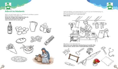 Auf 32 farbenfrohen Seiten gibt es viel zu erkunden! Spielerisch und kreativ lernen Kinder erste biblische Inhalte kennen und vertiefen sie ganz nebenbei.