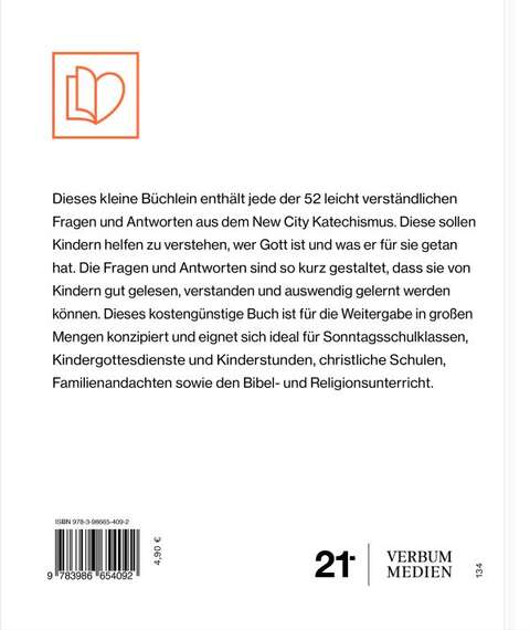 Dieses kleine Büchlein enthält jede der 52 leicht verständlichen Fragen und Antworten aus dem New City Katechismus. Diese sollen Kindern helfen zu verstehen, wer Gott ist und was er für sie getan hat. Die Fragen und Antworten sind so kurz gestaltet, dass sie von Kindern gut gelesen, verstanden und auswendig gelernt werden können.