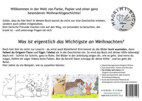 In diesem liebevoll gestalteten Mal- und Faltbuch entdecken Kinder ab 6 Jahren die faszinierende Welt des Origami ganz neu. In der warmherzigen Geschichte „Der Weihnachtsbesuch“ geht es um drei Tiere, die sich auf den Weg machen, um ihren kranken Freund zu besuchen.