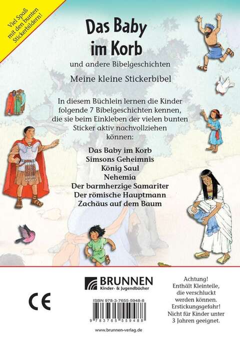Dieses kleine Stickerheft erzählt bekannte Bibelgeschichten in einfachen Worten nach. Mithilfe der Sticker können die Kinder die Geschichten mitgestalten und beschäftigen sich so intensiver mit den biblischen Erzählungen.